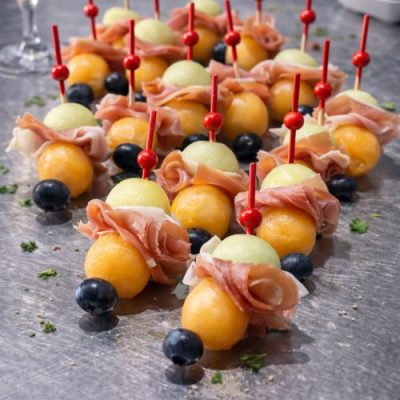 Prikker met meloen, rauwe ham en blauwe bes Genoemde prijs...