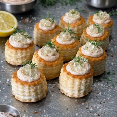 Pasteitje gevuld met zalmmousse. Geleverde kan enigszins afwijkend zijn dan...