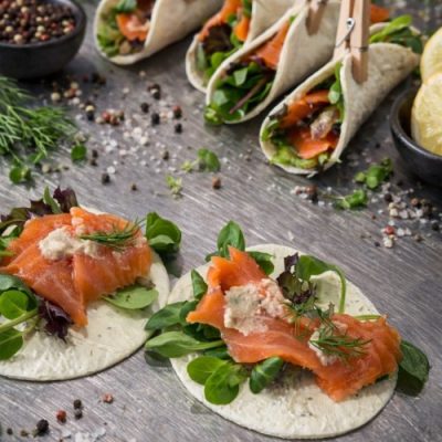 Wrap hapje met verschillende toppings Genoemde prijs is per stuk....