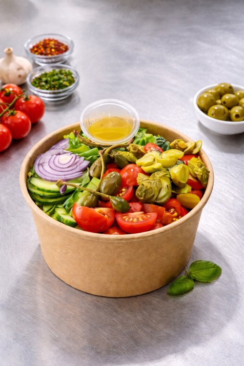 Gemengde salade voor bij een hoofdmaaltijd, afbeelding kan afwijken van geleverde. Zonder ei!