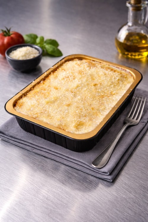 Italiaanse lasagne gevuld met een rijke saus van gehakt, tomaat, bleekselderij, wortel, spekjes, kaas, knoflook, ui en kruiden. Voor ca. 2 personen.