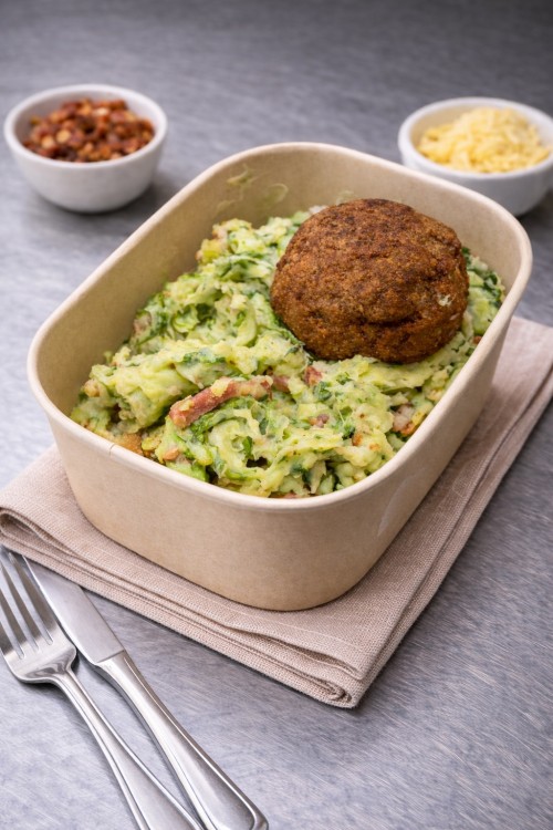 Een lekkere stamppot met rauwe andijvie, kaas, spekjes en een huisgemaakte gehaktbal. Hoe lekker kan eenvoud zijn!