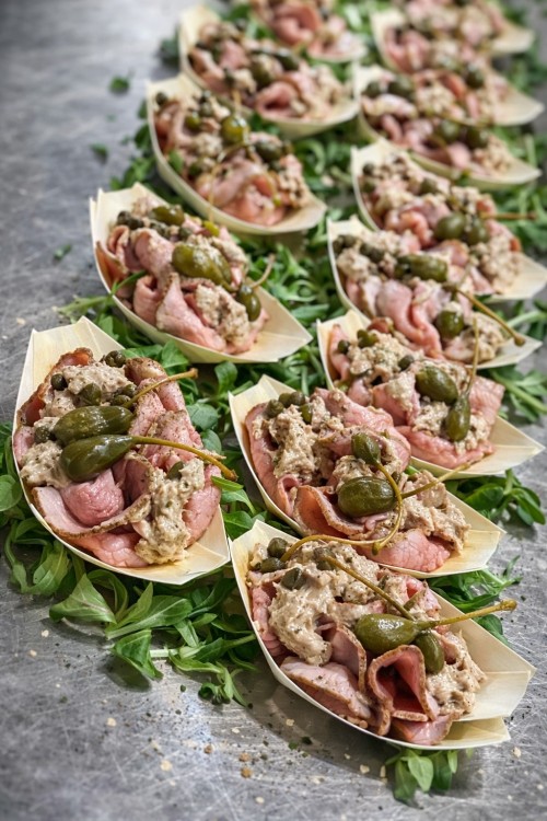 Kalsfricandeau met tonijnsaus en appelkappertjes