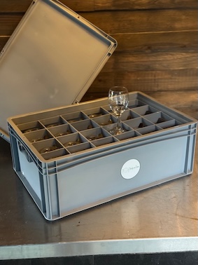 Per krat á 24 stuks. De glazen dienen schoon en breukvrij retour gedaan te worden. Bij schade wordt er €2,00 in rekening gebracht.