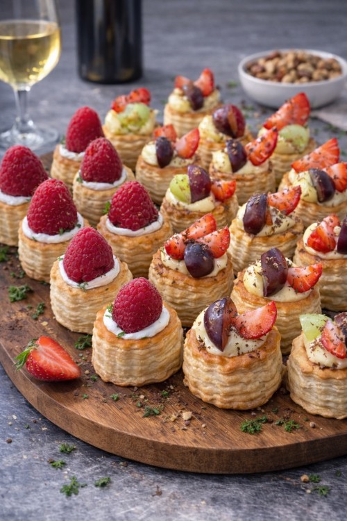 Gevuld zoet pasteitje met fruit topping.